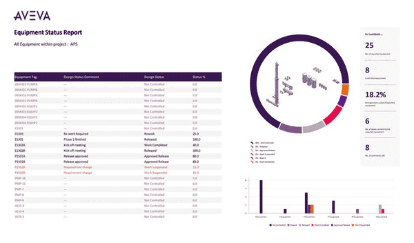AVEVA™ E3D Design™ 讓 3D 模型與 P&ID 圖整合,讓您可快速比較物件以及更新模型與圖面。除了物件設計外,當您想追蹤模型或專案完成的進度時,AVEVA™ E3D Design 提供您進度報表以及物件狀態的確認。